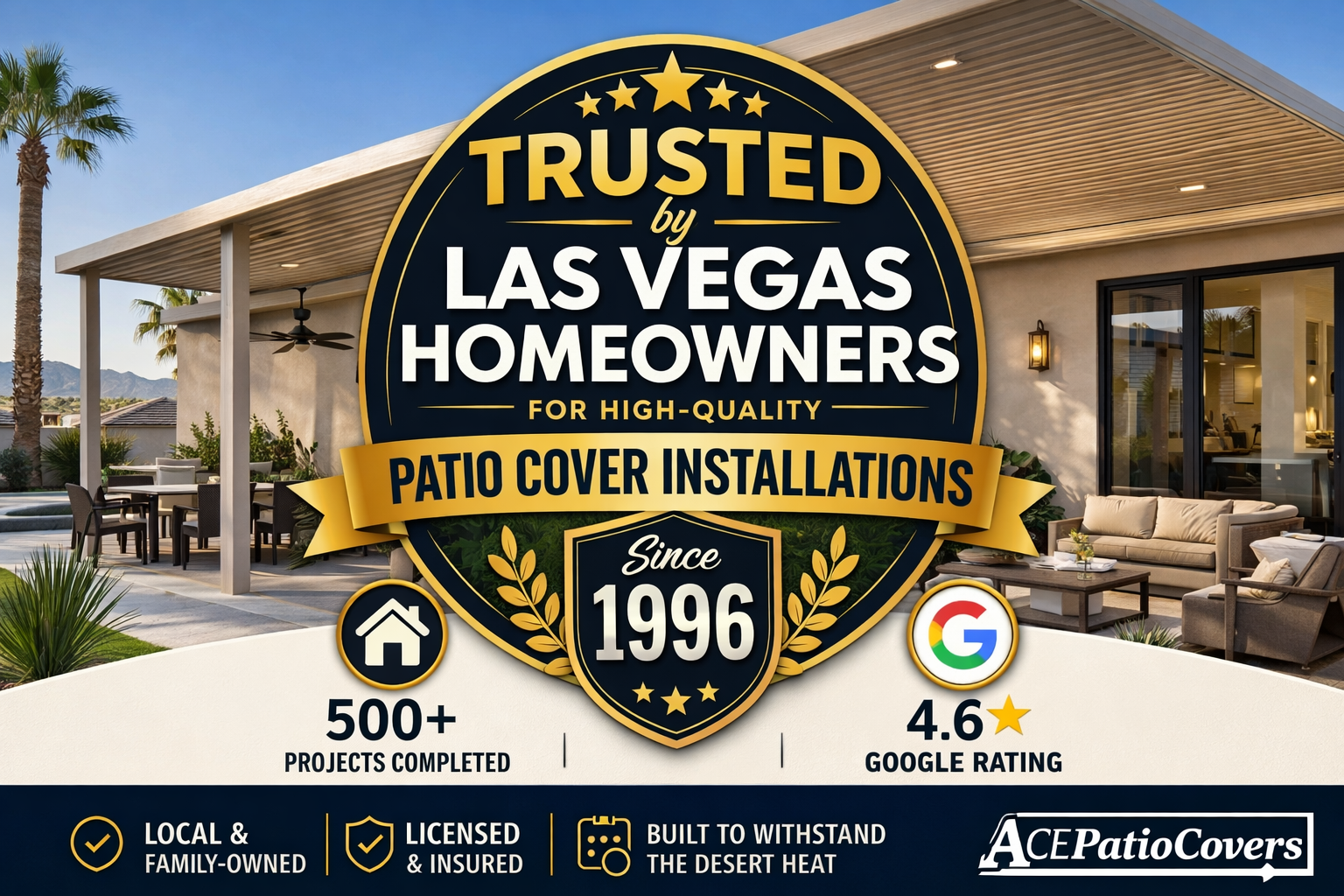 Trusted for over 30 years by Las Vegas homeowners for high-quality patio cover installations. ⭐ Google Rating 4.6