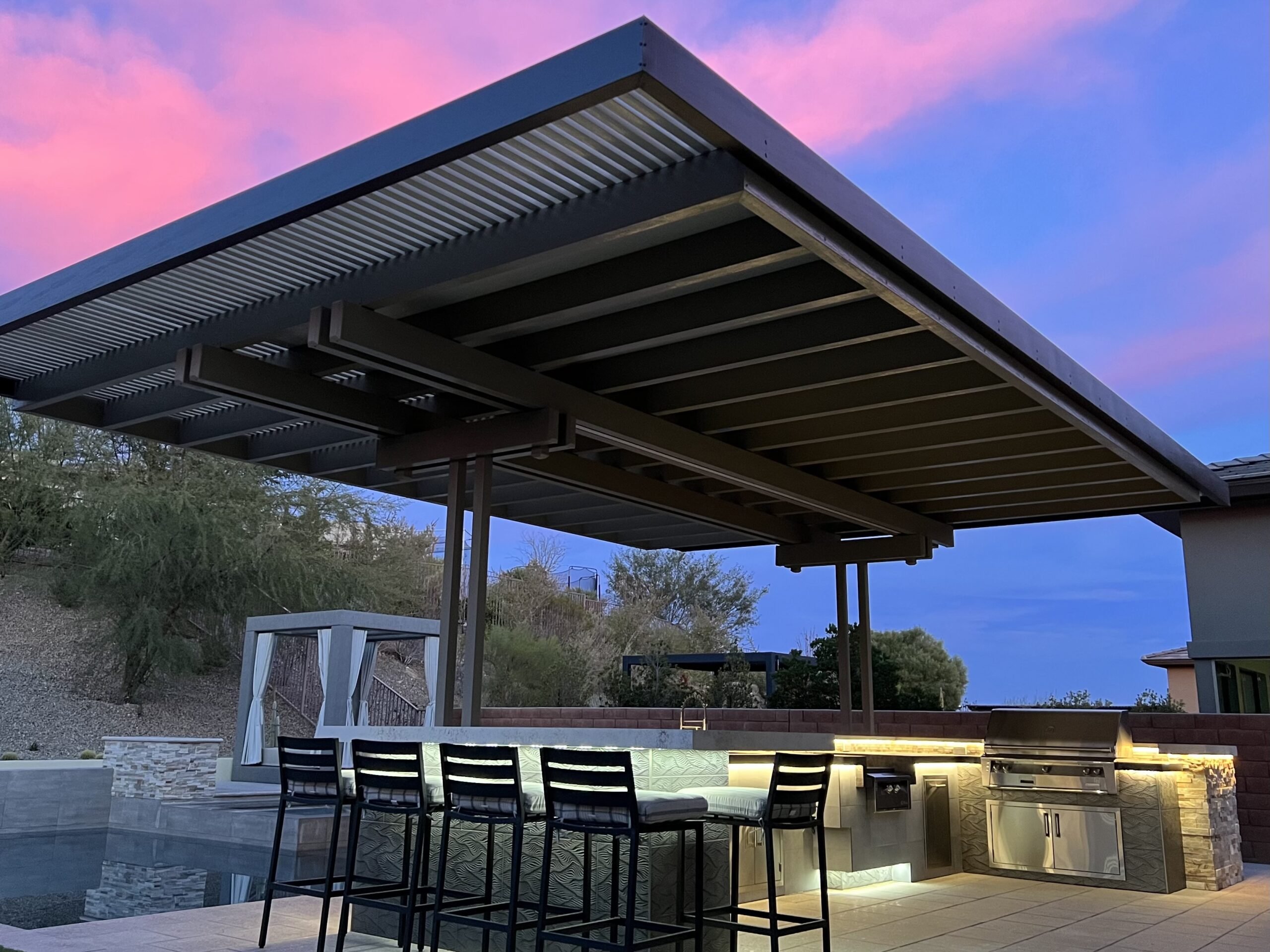 Patio cover costs in Las Vegas typically range from $5,000 to $25,000 but can rise into hundreds of thousands, depending on size, materials, and design complexity. We have a $25,000 minimum.